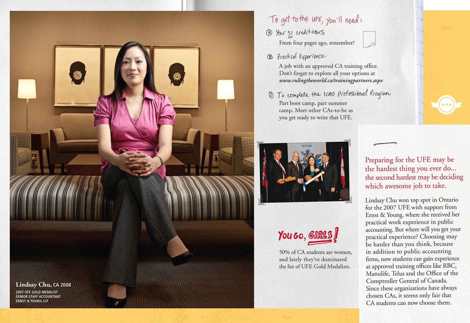 Although the Chartered Accountants of Ontario were not a large account for Ogilvy, I have included spreads from a booklet of theirs that, at the time, was relatively cutting edge and playful in its design. It showcases a wide range of production techniques with many moving pieces. It was challenging to assemble and to this day it remains one of my favourite production projects.